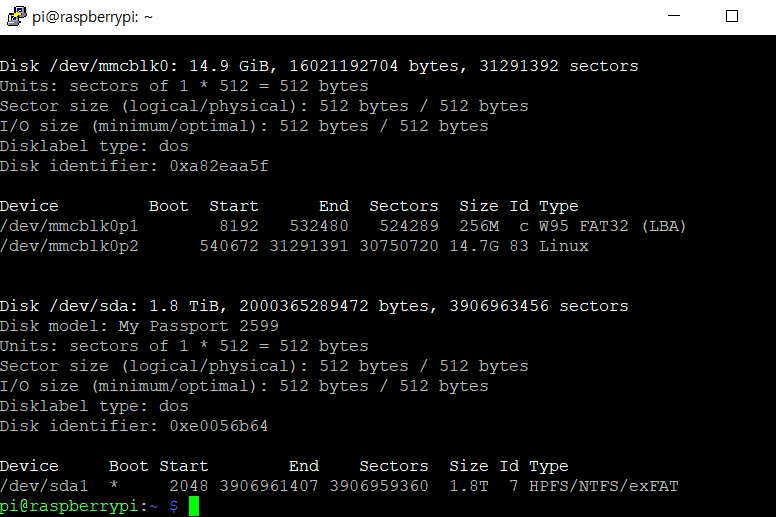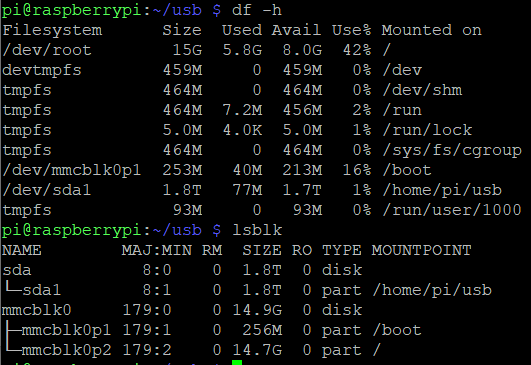2T 외장하드는 /dev/sda1 로 잡혀있음 sda1은 케바케 sda2, sdb1 등등~