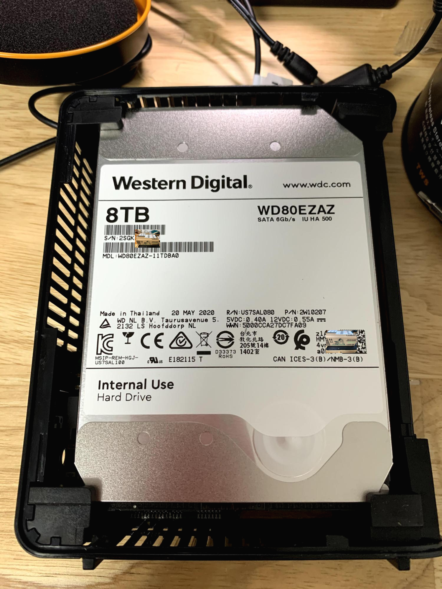 raid1 btrfs 로 변환하여 사용중이며, 2017년 말에 구입한 베바 이지스토어의 WD80EMAZ와 rpm/캐시가 동일합니다. 두 모델간 기판의 패턴이 약간 다른데 외형 및 성능상 거의 동일하다고 볼 수 있습니다. (5900/256MB)