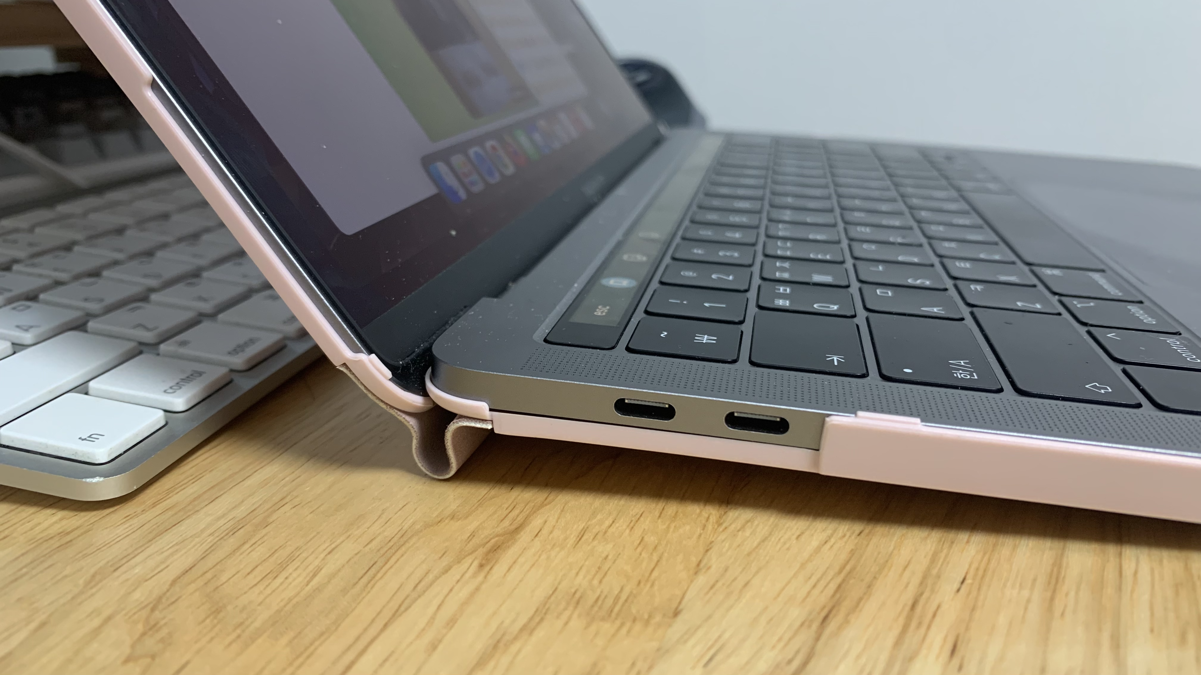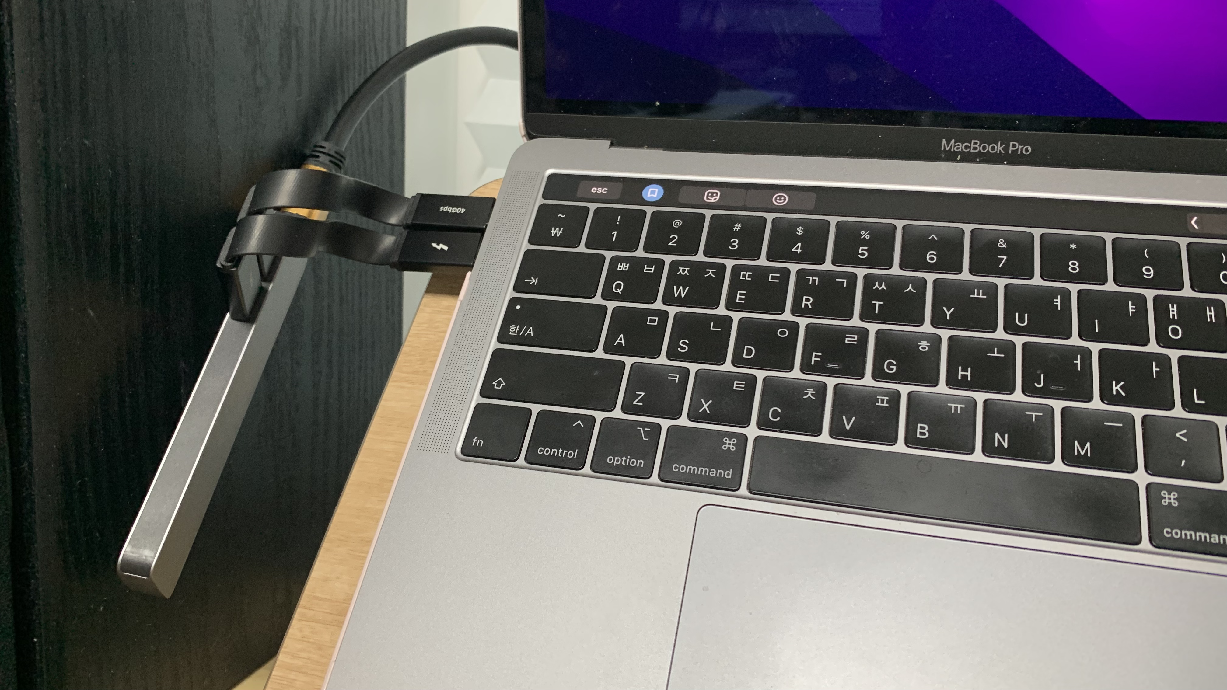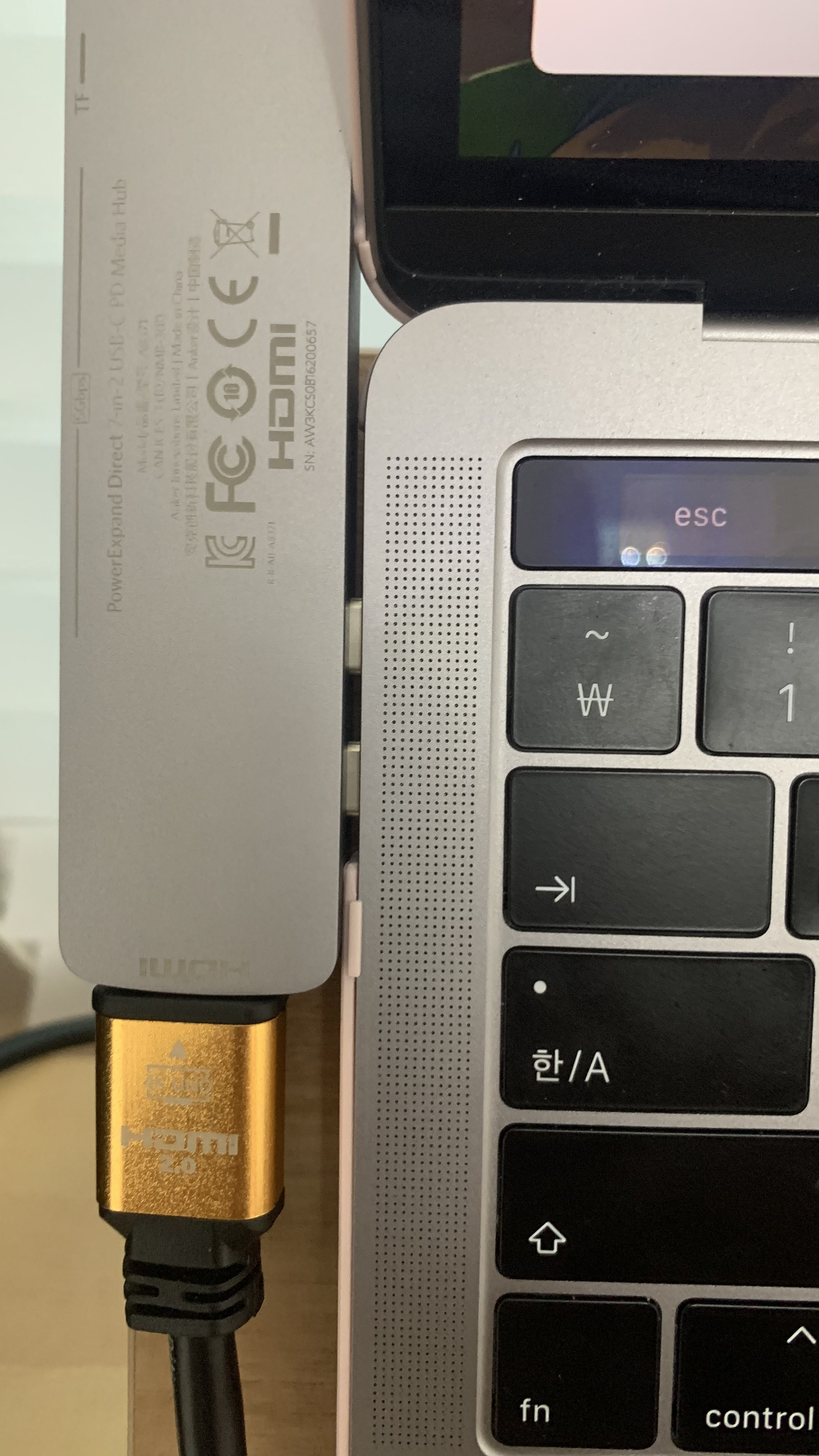 붕 뜨쥬? 그러면 케이블을 고이 반 접어서 맥북 바닥에 숨겨놓듯 깔아놓으면 됩니당. 아님 아예 좀 더 긴 연장케이블로 끼워도 되고요.