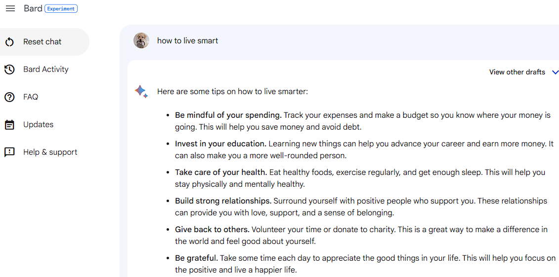 구글의 Bard는 뭔가 연세대 학생의 과제물같은 느낌이 난다. 뭔가 보기좋게 깔끔한 내용으로 정리되는데, 내용 자체가 너무 포멀(formal)한 형태의 반듯한 글이 나온다